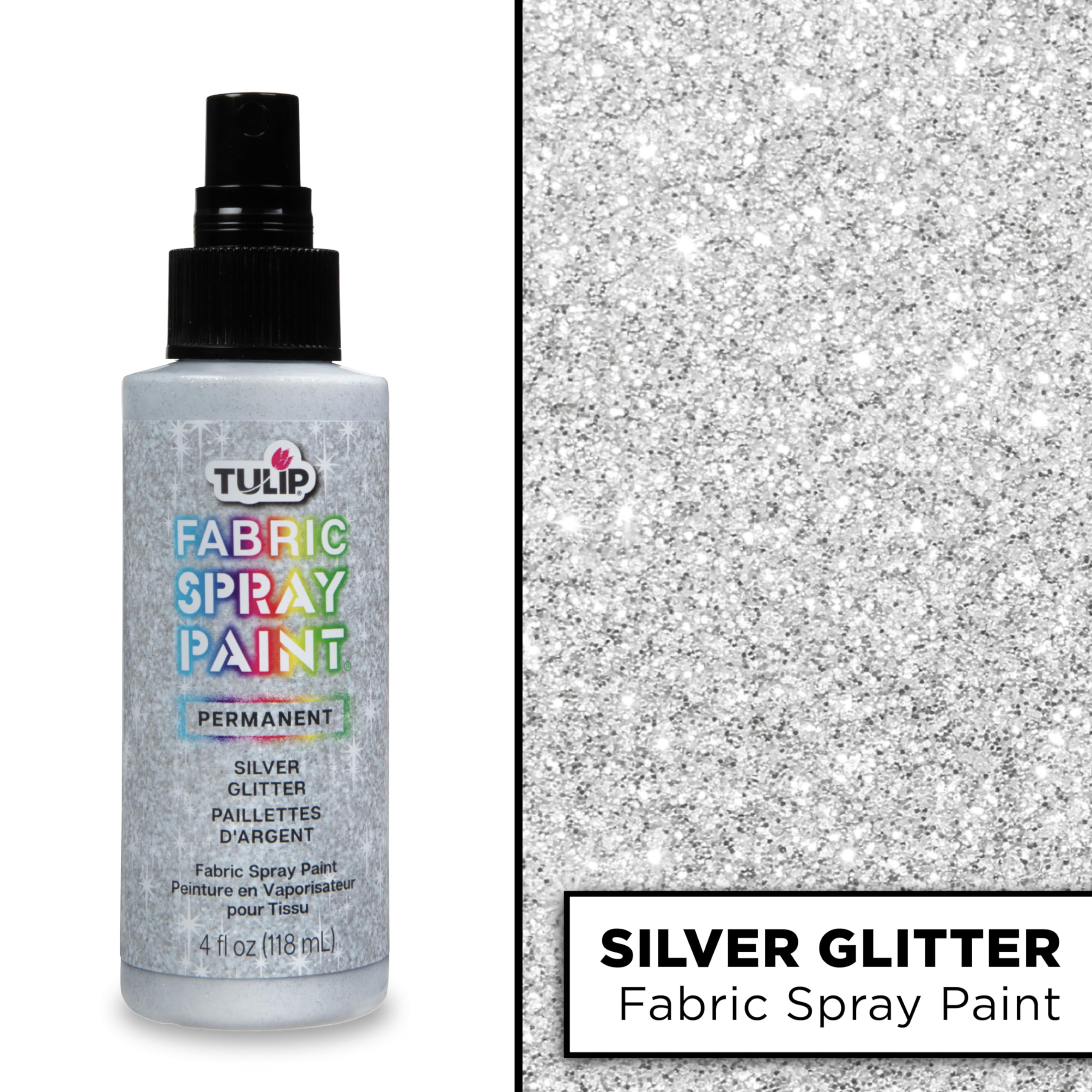 - SILVER GLITTER FABRIC SPRAY PAINT — INSTANT SHIMMER ON ANY FABRIC — Tulip Fabric Spray Paint in Silver Glitter delivers bold, light-catching glitter coverage that transforms clothing, shoes, tote bags, home décor, and DIY fabric projects with a dazzling, permanent shimmer finish in minutes. Works best on white and light-colored fabrics for the most vivid results.
