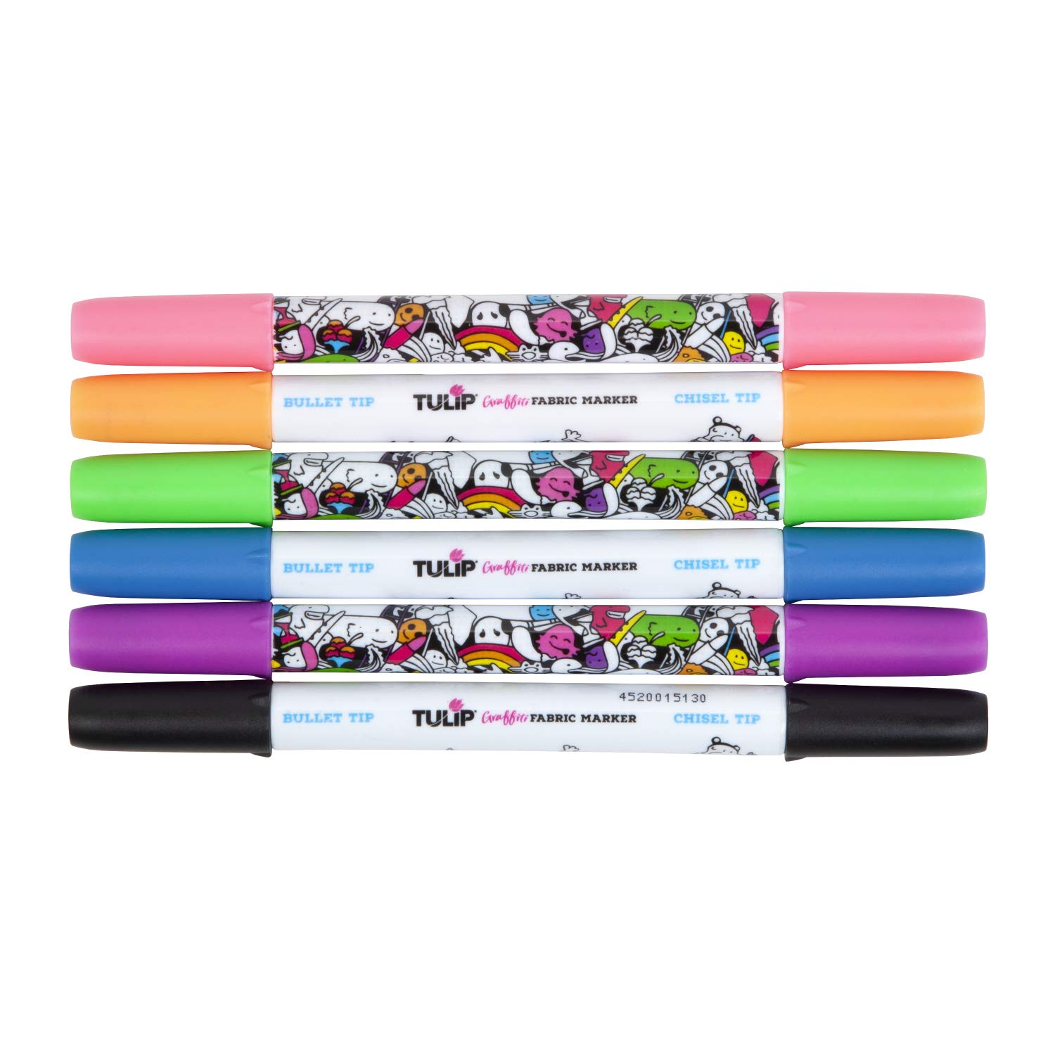 Tulip Permanent Fabric Markers, Dual Tip Graffiti 6-Pack, Neon