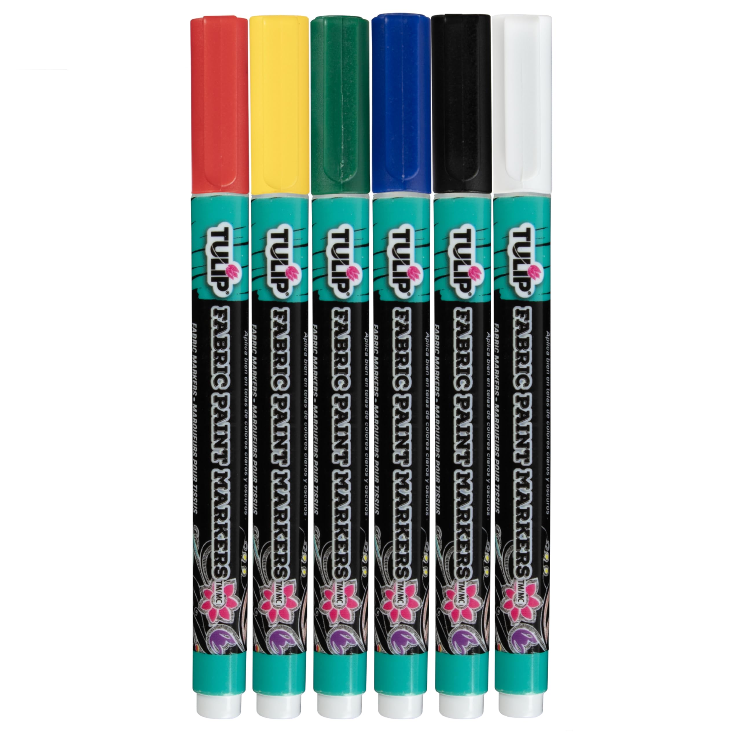 Tulip Permanent Fabric Pant Markers, for Use on Dark or Light Fabrics, Wood, Rocks, Primary 6-Pack